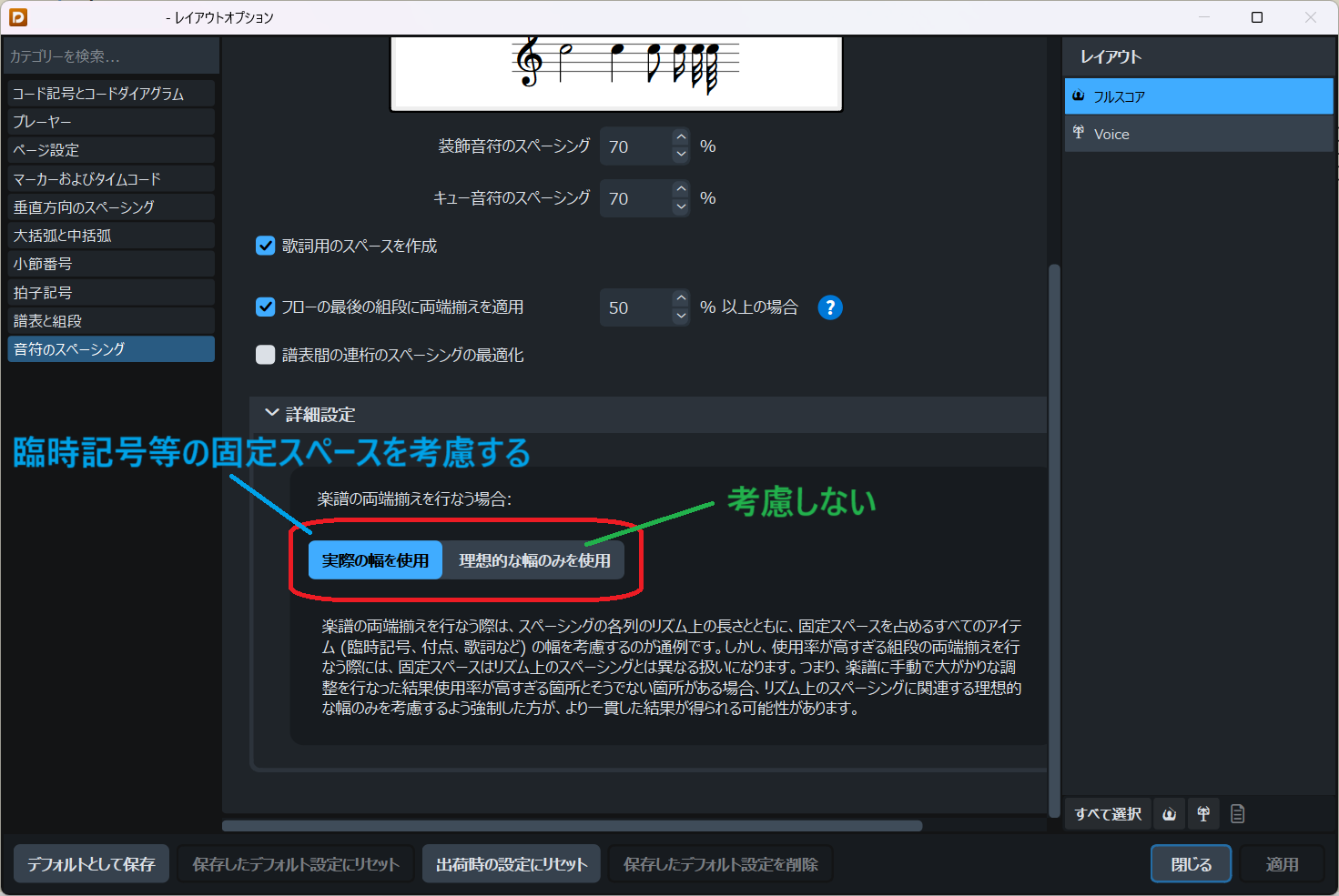・組段毎の音符密度から直感的に決めた「スペーシング比率」に設定する